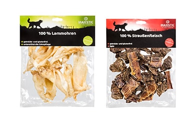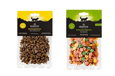 Unsere MAJESTIC Soft-Snacks eignen sich besonders gut für das Training mit deinem Vierbeiner. Diese leckeren Belohnungs-Snacks sind ohne Zusatz von Zucker, ohne künstliche Farbstoffe und natürlich ohne Getreide.
