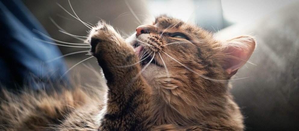 Katzen sind sehr reinliche Tiere und verbringen viel Zeit mit der Pflege ihres Fells. Sie setzen ihre Zunge wie einen Waschlappen ein und putzen sich damit gründlich. Dabei wird mit der rauen Zungenoberfläche auch das eine oder andere Haar aus dem Fell gelöst. Über das Maul wandert es in den Magen und Darm der Katze. Sind es nur wenige Haare, so passieren sie Magen und Darm und werden einfach ausgeschieden. Größere Haarmengen würgt die Katze hoch und spuckt sie aus. Das hört sich nicht immer schön an und sieht auch nicht appetitlich aus, ist aber ganz normal. Sorgen solltest du dir machen, wenn deine Katze die Haare nicht mehr herauswürgt. Sind es zu viele verschluckte Haare, dann können sie im Magen oder Darm verklumpen. Diese Haarballen können dann sogar zu ernsthaften Darmstörungen wie Verstopfung und Darmverschluss führen.